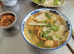 While passing through Da Nang you’ll get to know the thick noodle dish Mi Quang very well. Traditionally a breakfast dish it’s served with a touch of spiced broth and your choice of either fish, chicken or beef as a protein. In our opinion, Mi Quang Dung makes some of the best in the city.